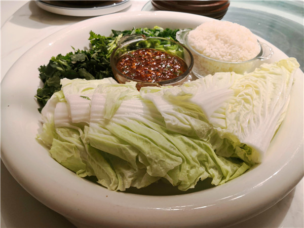 尤其扎眼的,正對大門的明廚亮灶上的幾塊牌匾,一下子就勾起人的食欲:老式熏豬手、手工燒老雞、烏蘇里江鰉魚、興凱湖大白魚、查干湖胖頭魚、火夫灶羊腿。這些都是地道的東北味啊!據(jù)介紹,老板湯長明是黑龍江“龍菜”系傳承領(lǐng)軍人物,祖孫四代傳承東北菜廚藝,現(xiàn)在關(guān)東大院餐飲集團董事長。當然,許多大家耳熟能詳?shù)拇蟊姴艘矐?yīng)有盡有,如:殺豬菜、小雞燉蘑菇、得莫利燉魚、大鵝燉寬粉、黑皮肘子、酸菜粉、地三鮮、東北鹵水點豆腐、金湯遼參、黃魚燒土豆、紅燒肉黃金勾......看得人口水直冒。加之,整個門店的布局也十分特別,一樓明廚亮灶之外,主要是大堂散座,周邊還有不少的書籍、酒架;二樓主要是包間,簡潔明亮??梢哉f,在此可以感受到一股濃濃的關(guān)東風情。