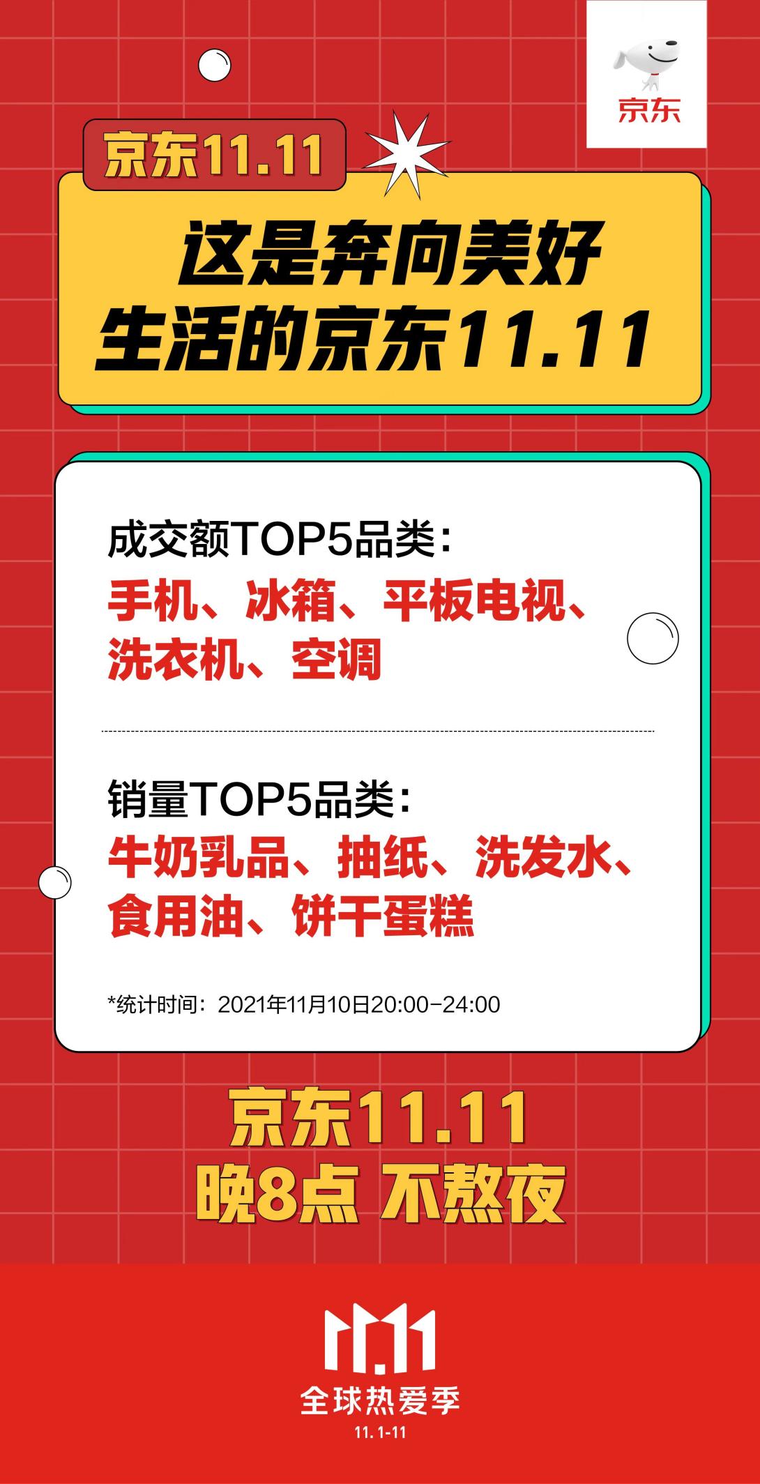 從10日晚8點(diǎn)到11日0點(diǎn)短短4小時(shí)內(nèi),可以看到消費(fèi)者對(duì)美好生活的向往和對(duì)消費(fèi)升級(jí)的追求。其中成交額TOP5品類:手機(jī)、冰箱、平板電視、洗衣機(jī)、空調(diào);銷量TOP5品類:牛奶乳品、抽紙、洗發(fā)水、食用油、餅干蛋糕。