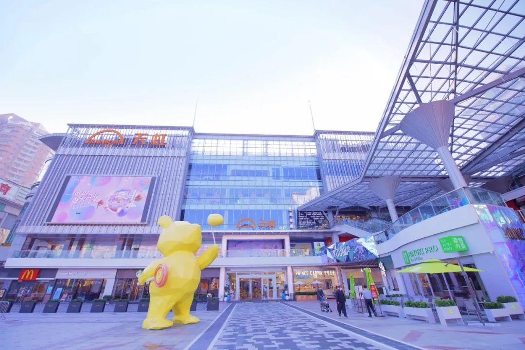 常平天虹購物中心擁有特色十足的盒子+情景主題街區(qū)建筑布局。多首層式設計,讓顧客可以自由地從不同樓層進入商場,打破傳統(tǒng)“盒子”建筑的封閉空間感,使逛街充滿樂趣。購物中心門前的常平首家 IP休閑歡樂廣場,擁有6米高泡泡熊雕塑、燈光音樂噴泉等娛樂設施,為周邊居民創(chuàng)造一個可玩、可親、可打卡的戶外體驗空間。