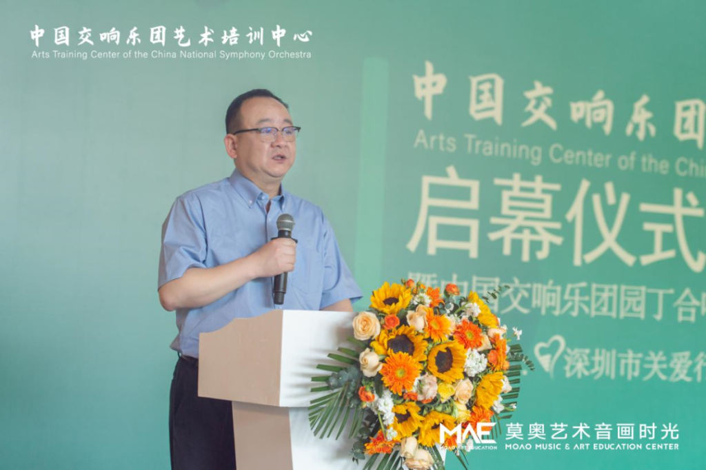 中國(guó)交響樂(lè)團(tuán)副團(tuán)長(zhǎng)尹波、南山區(qū)文化廣電旅游體育局黨組成員、副局長(zhǎng)任艷峰、中國(guó)交響樂(lè)團(tuán)藝術(shù)培訓(xùn)中心主任王曉柯、中國(guó)交響樂(lè)團(tuán)藝術(shù)培訓(xùn)中心深圳負(fù)責(zé)人韓仕英、華僑城歡樂(lè)時(shí)光項(xiàng)目負(fù)責(zé)人鄧皋峰、深圳市關(guān)愛(ài)行動(dòng)基金會(huì)副秘書(shū)長(zhǎng)魏平、莫奧藝術(shù)音畫(huà)時(shí)光校長(zhǎng)王婷、莫奧藝術(shù)音畫(huà)時(shí)光行政總監(jiān)曹克等嘉賓出席了開(kāi)幕儀式。