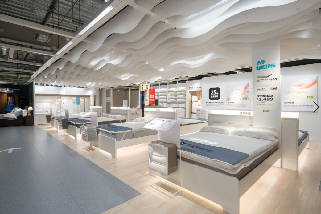 在床墊挑選區(qū),宜家專門設(shè)計(jì)了一個(gè)床墊的“沉浸式”體驗(yàn)室,可以讓顧客全身心放松地感受宜家床墊。
