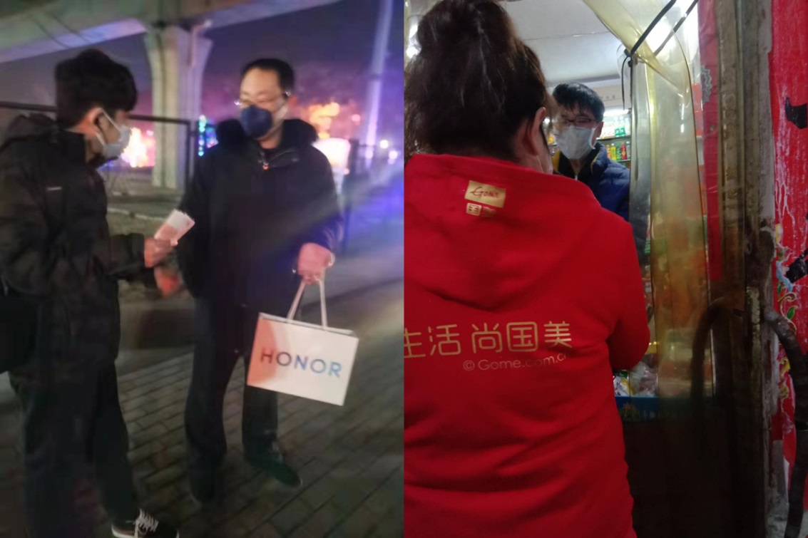 2月23日,北京國美十里河店華為手機(jī)促銷員王俊為家住十里河的苗女士免費(fèi)寄出了當(dāng)日購買的華為手機(jī),家住六里橋的李先生收獲了自己23分鐘前下單的美的電水壺,為他送貨的國美六里橋門店美的品牌促銷員張曉燕。