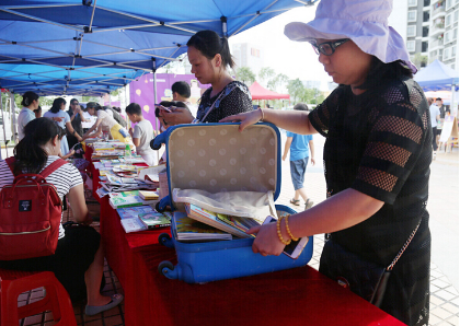 618日,深圳新聞網(wǎng)攜手中國(guó)光大銀行深圳分行,聯(lián)合舉辦了一場(chǎng)“行李箱捐換書(shū)籍”公益活動(dòng),數(shù)百名小朋友及家長(zhǎng)拖著大小不一的行李箱來(lái)到現(xiàn)場(chǎng),不僅換到了喜歡的讀物,還捐出自己的藏書(shū),在分享讀書(shū)之樂(lè)的同時(shí),將愛(ài)心傳遞下去。