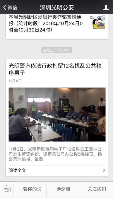 光明新區(qū)唯一官方微信入駐@深圳