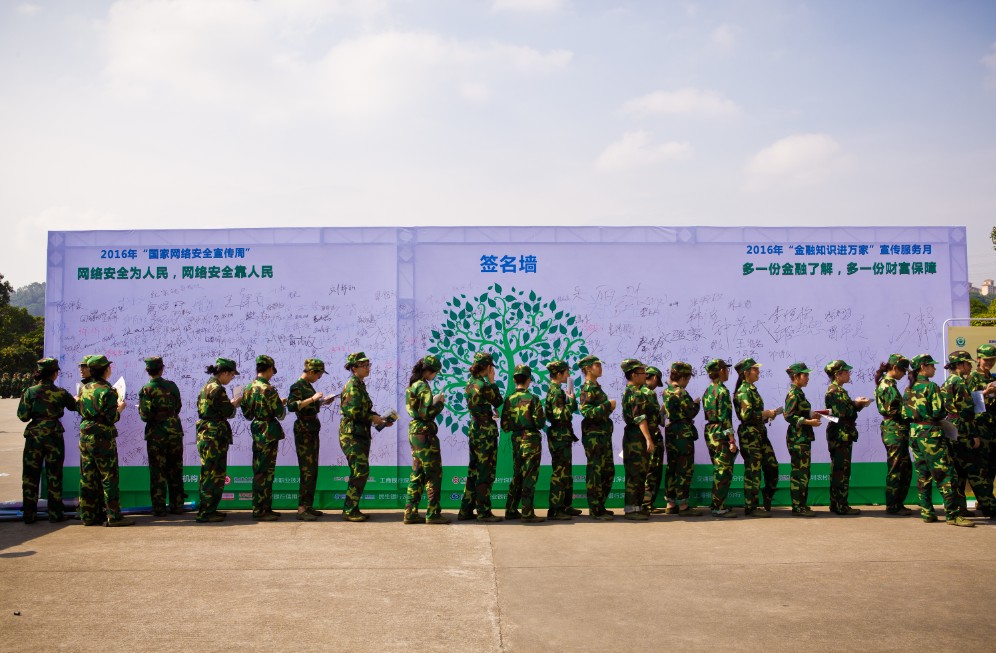 近4000名深圳職業(yè)技術(shù)學(xué)院的大一新生積極參與,在各個(gè)展位前領(lǐng)取宣傳手冊(cè)、折頁,并在簽名版上爭相簽名留念。但這場活動(dòng)并不是在深圳職業(yè)技術(shù)學(xué)院校園,而是在深圳國防教育基地。