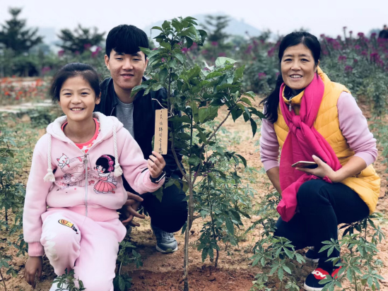 賞完了美景,是我們小記者今天最重要的活動(dòng)了,由自己命名的栽植黃皮樹(shù)。我選了一棵特別漂亮的黃皮樹(shù),挖好坑,施上肥,我把黃皮樹(shù)輕輕地放在坑里,填滿(mǎn)了土,澆上水,和它合了個(gè)美麗的靚影!