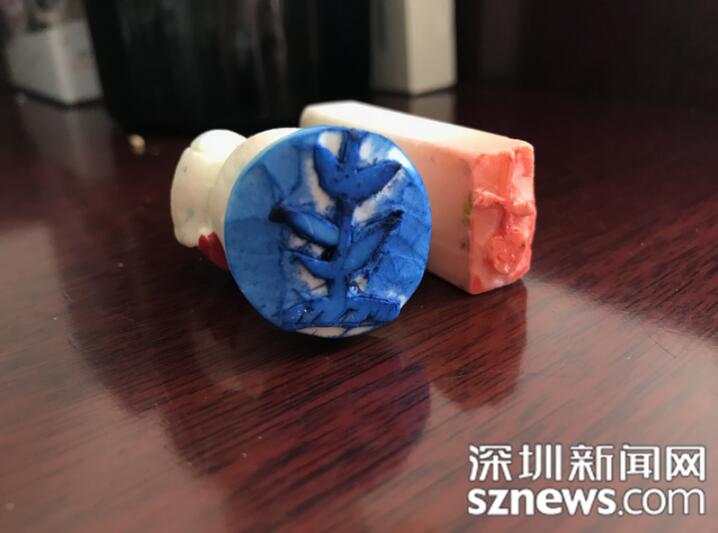 小葉老師用于課堂激勵(lì)的自制印章“小苗苗”和“紅果果”