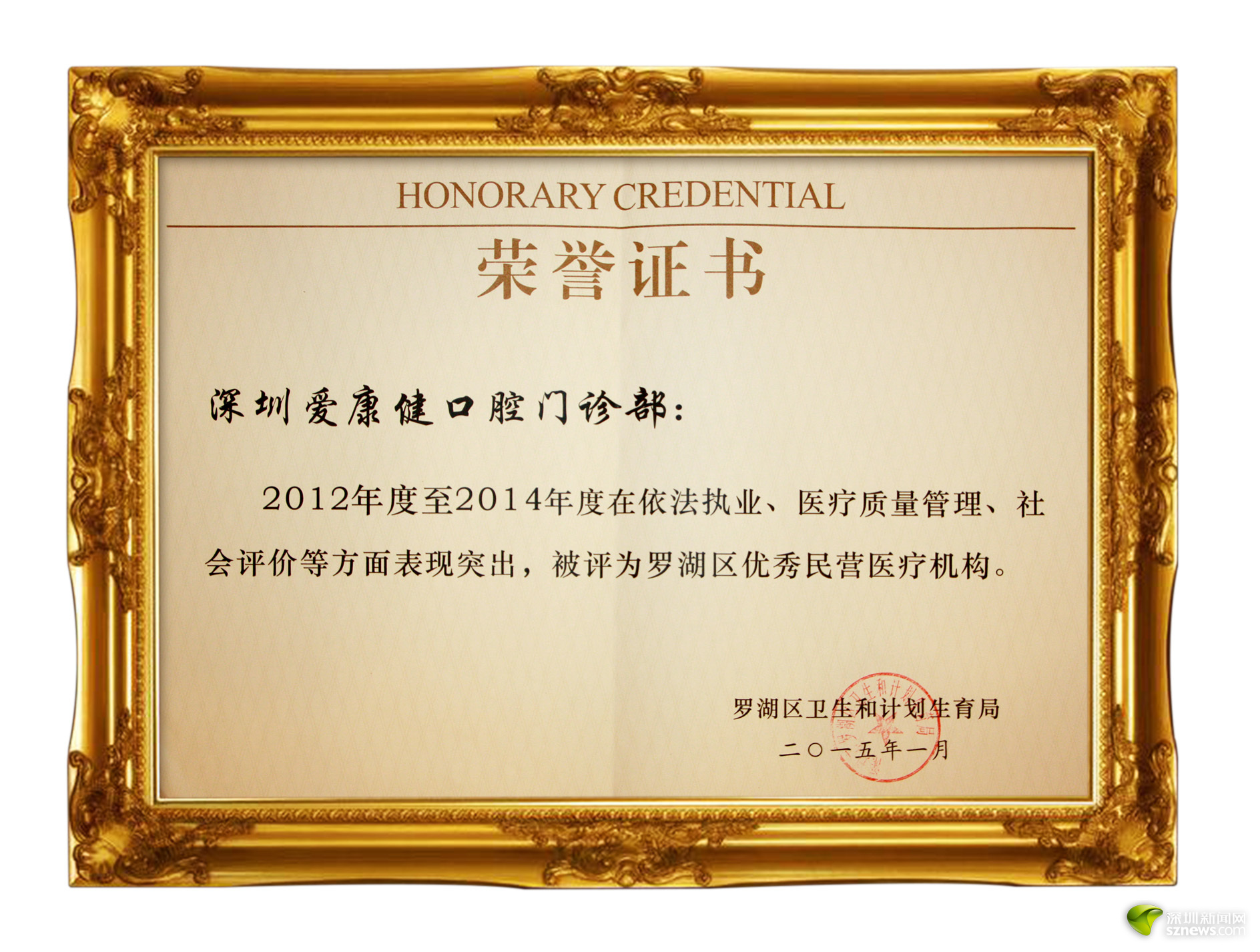 在羅湖區(qū)衛(wèi)生和人口計劃生育局民營醫(yī)療機(jī)構(gòu)醫(yī)療服務(wù)整體管理與醫(yī)療質(zhì)量控制評估中,獲評“A級單位”。