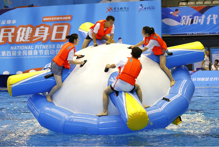 啟動儀式結(jié)束后,現(xiàn)場的泳池內(nèi)還開展了全民運(yùn)動薈板塊的水上趣味運(yùn)動會項(xiàng)目。