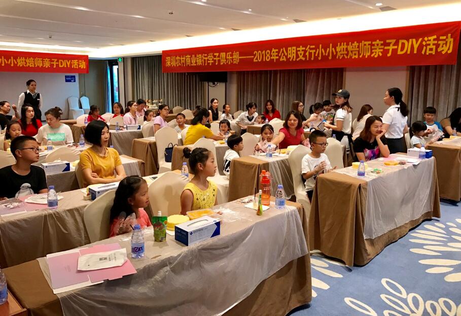 7月26日,深圳農(nóng)商行公明支行在凱雷斯頓酒店成功舉辦了“小小烘焙師”學子俱樂部活動?;顒友埩嗽@得美國國際惠爾通證書、2017年法國藍帶大中華賽區(qū)冠軍的資深烘焙師cherry老師現(xiàn)場授課。她帶領著現(xiàn)場的17組家庭、40余位家長和小朋友,共同完成了一堂妙趣橫生的水果裸蛋糕DIY教學課程。