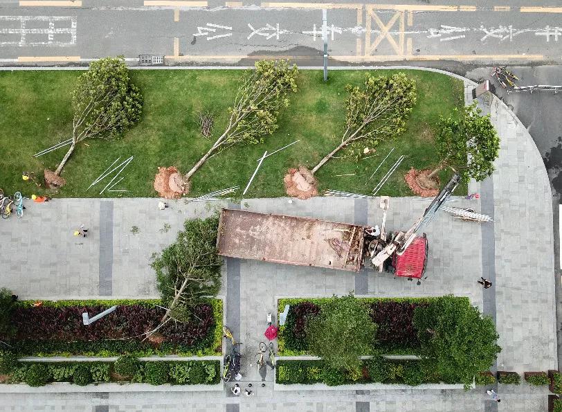 組織人力和車(chē)輛將倒伏樹(shù)木扶正并種好