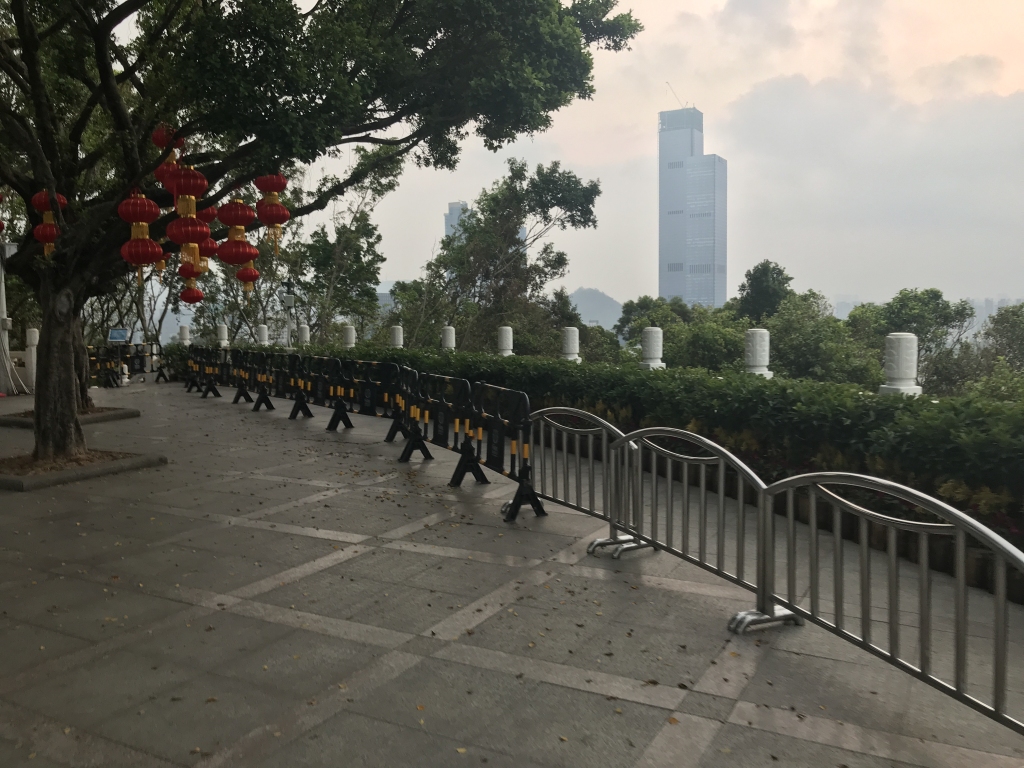 10月9日,有市民發(fā)帖稱,蓮花山公園山頂廣場上以及廣場四周的漢白玉欄桿前,都被人為設(shè)置了一圈“鐵馬”。由于蓮花山山頂是深圳著名的旅游景點(diǎn),該市民認(rèn)為設(shè)置圍欄會使很多游客無法近距離合影。與此同時(shí),市民還反映如要靠近廣場四周的漢白玉欄桿前拍照,就會被公園保安阻攔。保安稱要靠近欄桿拍照,則必須到管理處開證明,其質(zhì)疑該項(xiàng)規(guī)定不合理。