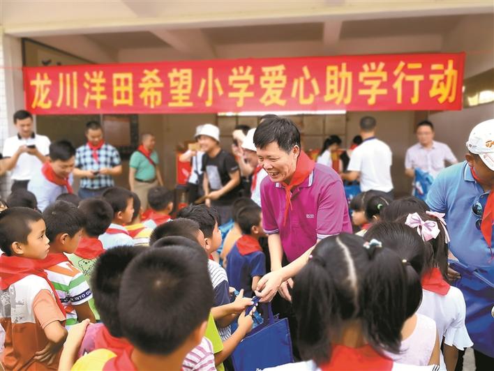 ▲黃爾春參與龍川洋田希望小學(xué)助學(xué)行動。