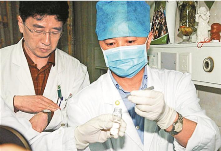 ▲2006年4月20日,姚曉明(右)取出著名歌手叢飛的右眼角膜。