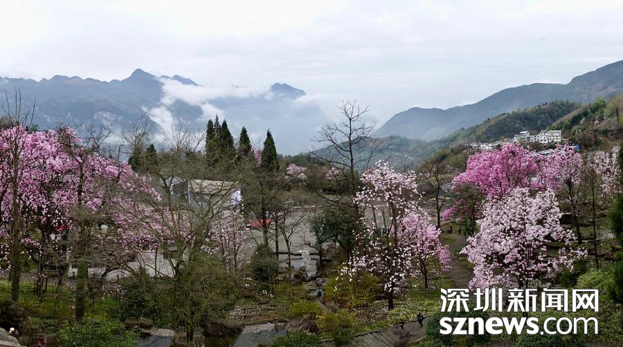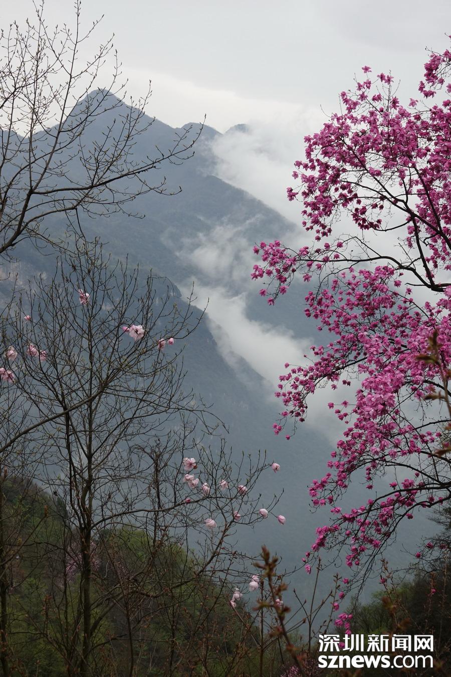 北川藥王谷,雨霧濛濛之中觀賞盛開的辛夷花,宛若置身仙境......李仁奇 攝
