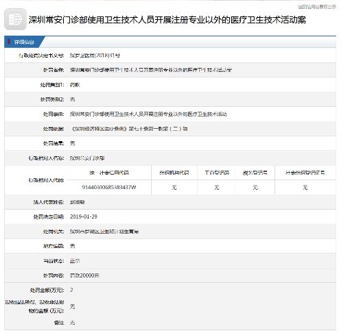 對(duì)于市民投訴門(mén)診部?jī)?nèi)科醫(yī)生非法進(jìn)行醫(yī)美活動(dòng)的問(wèn)題。衛(wèi)健局表示:2018年12月底,以群眾舉報(bào)為線索,對(duì)深圳常安門(mén)診部進(jìn)行了調(diào)查,查明使用了一名內(nèi)科專業(yè)的執(zhí)業(yè)醫(yī)師開(kāi)展醫(yī)療美容活動(dòng)的違法行為,依據(jù)《深圳經(jīng)濟(jì)特區(qū)醫(yī)療條例》規(guī)定,已分別給予該機(jī)構(gòu)及醫(yī)師個(gè)人罰款兩萬(wàn)元及五千元的行政處罰,處罰信息公示在“羅湖政府在線”網(wǎng)站上。