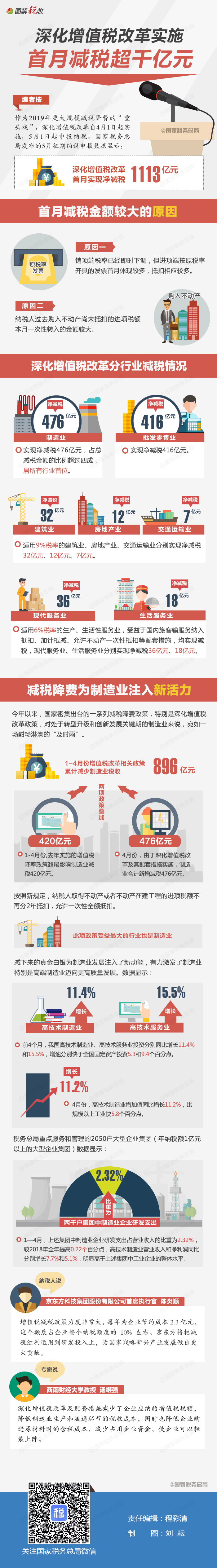 圖解深化增值稅改革實施首月減稅超千億元
