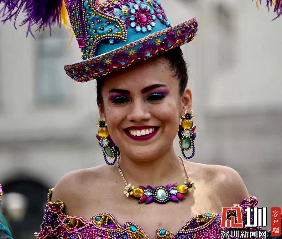 市中心武器廣場幾支中老年拉丁舞蹈隊(duì)艷麗的化妝和特色鮮明的民族服裝吸引著眾多的游客。李仁奇攝
