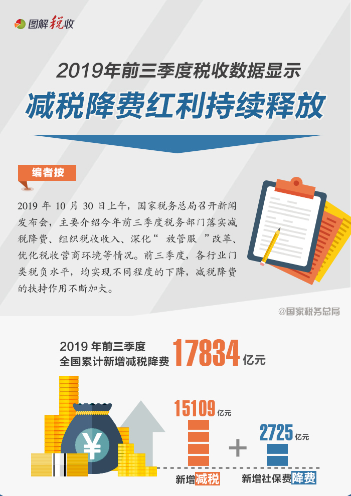 2019年前三季度稅收數(shù)據(jù)顯示減稅降費(fèi)紅利持續(xù)釋放