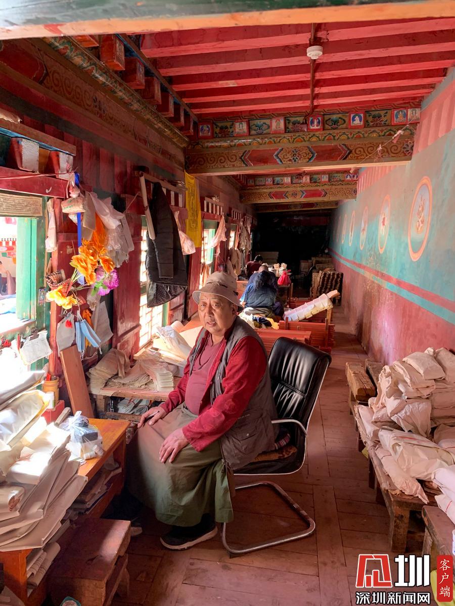 上述工序既是流水作業(yè),又相互交叉,有條不紊。印刷是整個生產工藝流程中工人負荷較重、工序相對較多的關鍵部分,主要在印經院的二樓。印刷工由兩人一組,一高一矮相對而坐,印版就放置在兩人之間的斜板上。李仁奇攝