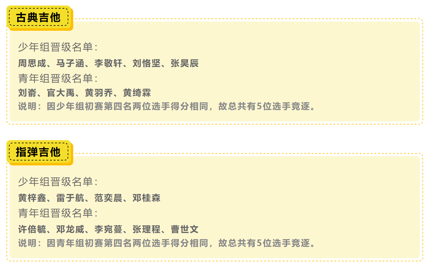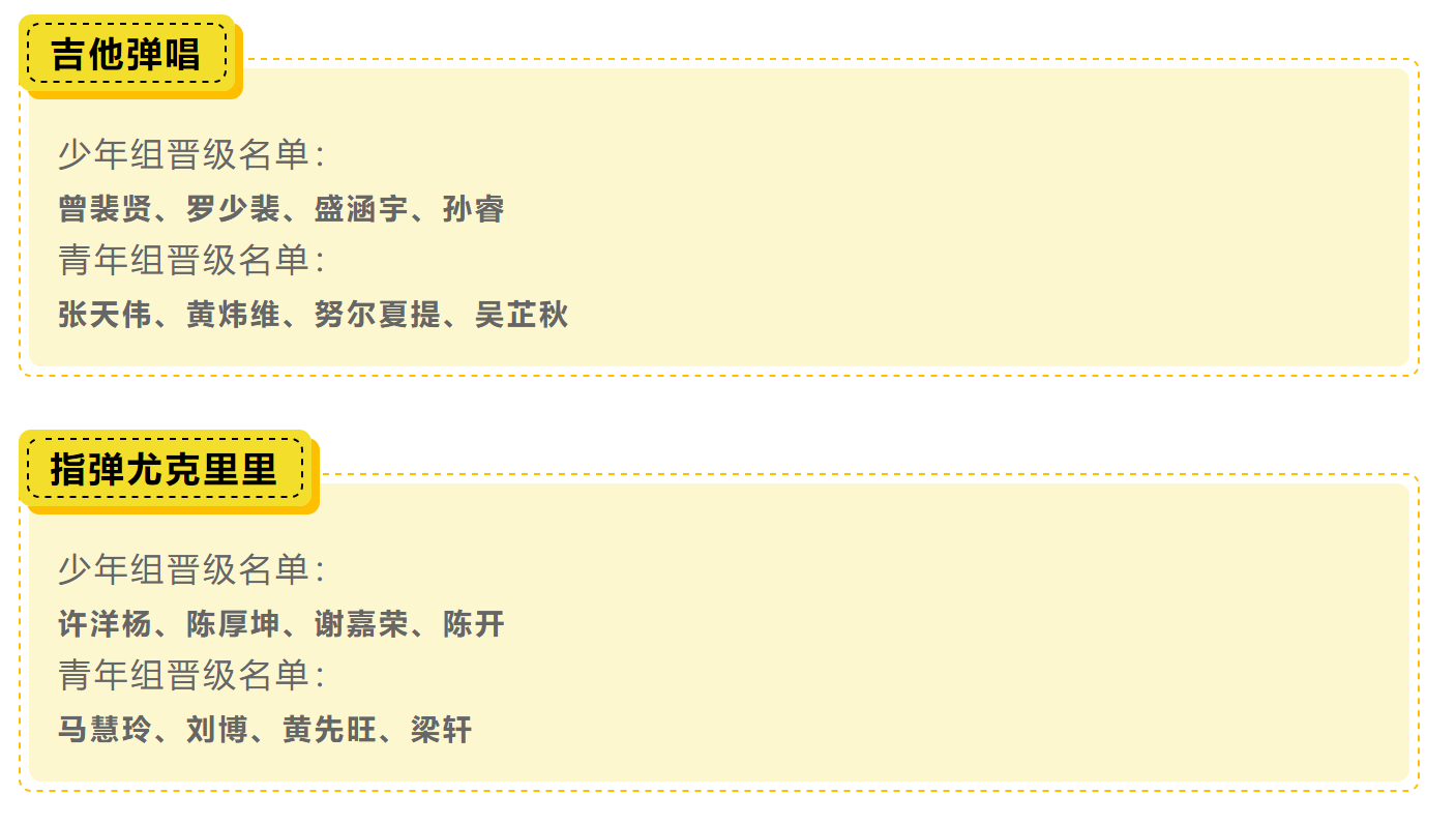 首屆“前海吉他&尤克里里大賽”,在短短一個(gè)月內(nèi)收到了全國各地愛好者的踴躍報(bào)名!經(jīng)過了專業(yè)評(píng)委們對初選綜合評(píng)分,最終在激烈的角逐下,組委會(huì)篩選出八個(gè)組別共34位選手入圍決賽!