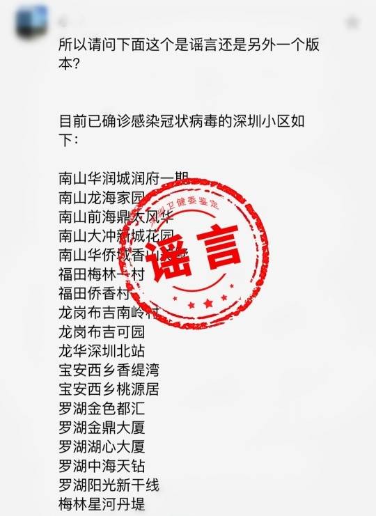 根據(jù)國家衛(wèi)健委疾控局“以社區(qū)防控為主”、加強“群防群控”的通知精神,深圳于1月30日晚響應(yīng)市民的強烈呼聲,公布了第一批31個曾有新型冠狀病毒感染的肺炎病人逗留的小區(qū)(場所)名單。