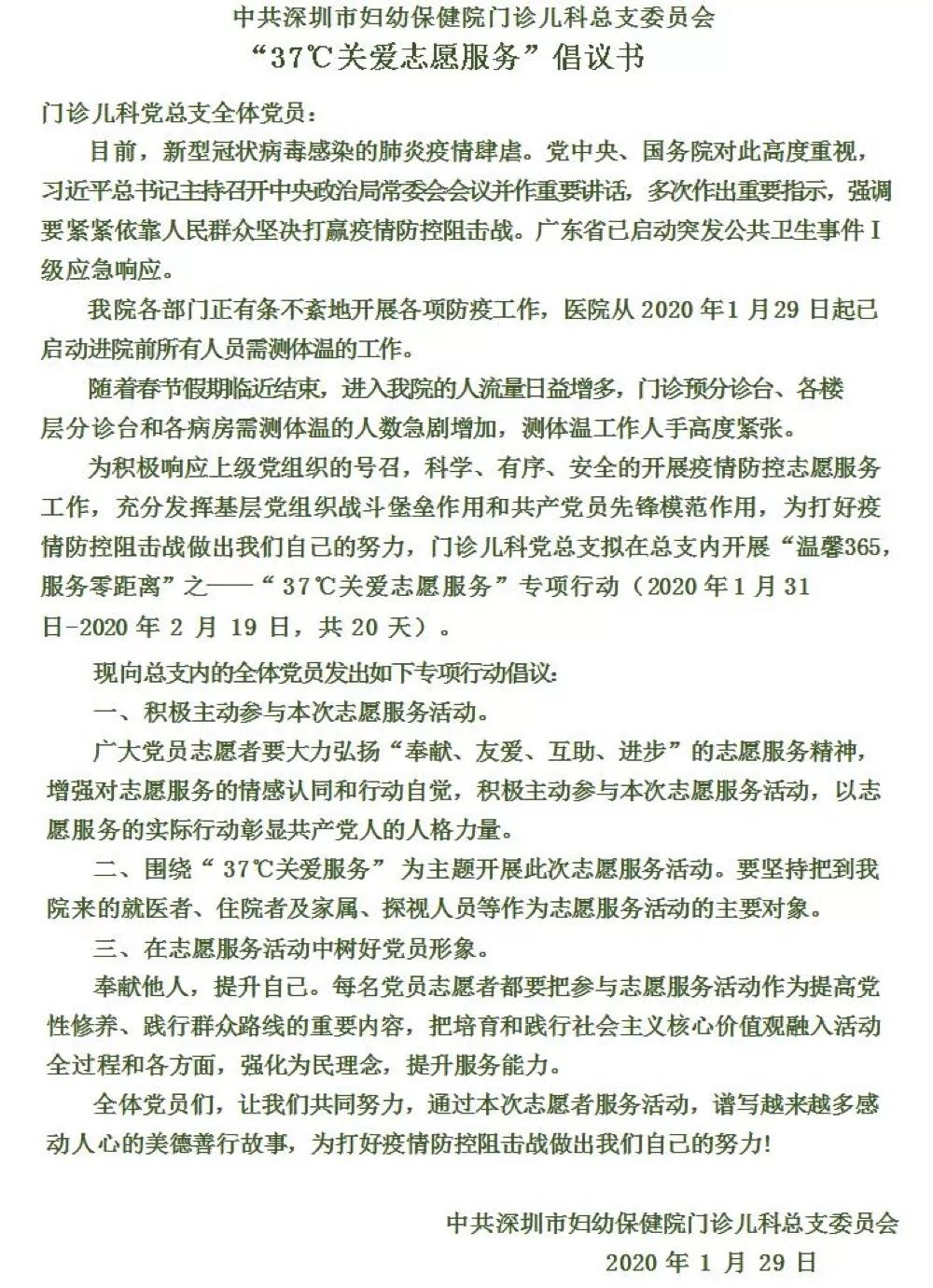 新型冠狀病毒感染的肺炎疫情發(fā)生后,深圳市婦幼保健院黨委積極貫徹落實(shí)習(xí)近平總書(shū)記關(guān)于疫情防控重要指示精神,在市委和衛(wèi)生工委的堅(jiān)強(qiáng)領(lǐng)導(dǎo)下,充分發(fā)揮基層黨組織和廣大黨員干部的戰(zhàn)斗堡壘作用和先鋒模范作用,以實(shí)際行動(dòng)踐初心擔(dān)使命,團(tuán)結(jié)帶領(lǐng)全院職工,為打贏疫情防控阻擊戰(zhàn)提供了堅(jiān)強(qiáng)保證。