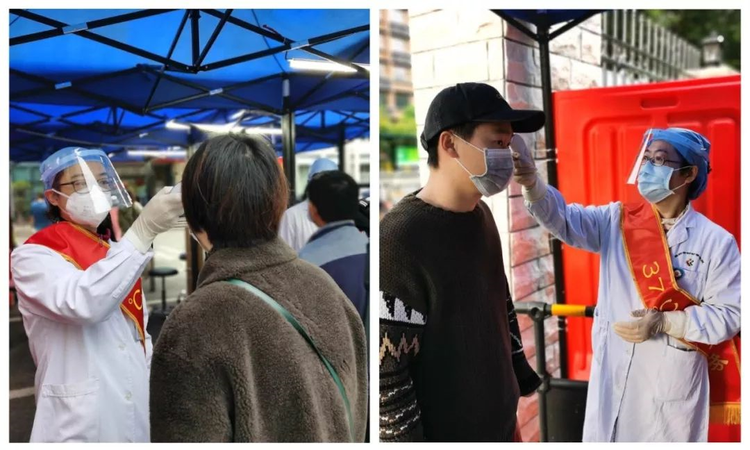 一名黨員志愿者正在為進(jìn)入醫(yī)院大樓的市民測(cè)體溫。“36.5度,一切正常,請(qǐng)您繼續(xù)做好疫情防護(hù),切不能掉以輕心?!?/p>