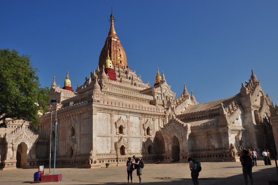 包括最古老的瑞西光塔,它金碧輝煌,可以媲美仰光大金塔;建筑最優(yōu)美的阿蘭達塔造型、工藝超群,最能代表緬甸早期的古塔建筑;最高的大比紐塔高達70多米,相當于20層樓房;還有面積最大、墻體最厚的狄馬揚意塔等等。李仁奇攝