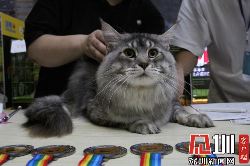 一只貓咪正在被裁判進(jìn)行評(píng)估。