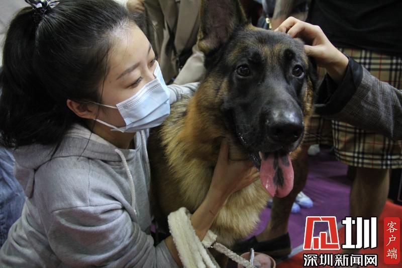 記者與觀眾帶來的自家寵物犬進行互動。