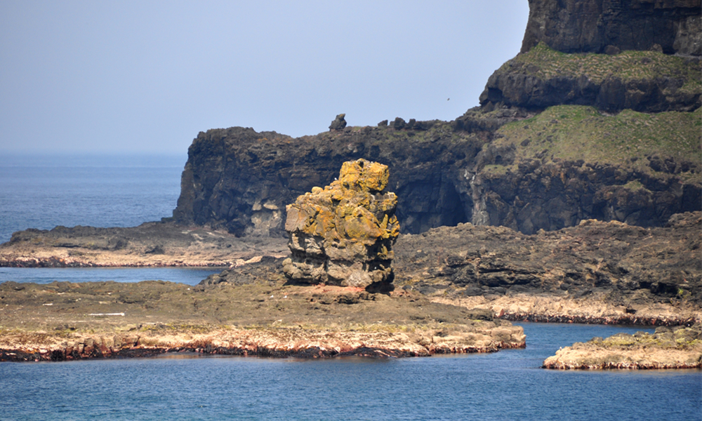 組成巨人堤道的典型石柱寬約0.45m,有的石柱高出海面6m以上,最高者達(dá)12m左右,還有大量淹沒(méi)于水下或與海面持平的石柱。李仁奇 攝