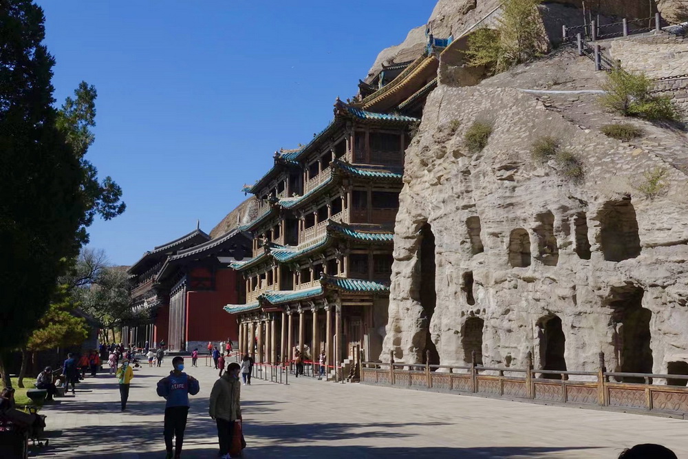 從外面看云岡石窟,經(jīng)歷1500年時(shí)光的風(fēng)雨侵襲,依然保持著挺拔的姿態(tài),不得不佩服古人當(dāng)時(shí)的建筑工藝。李仁奇 攝