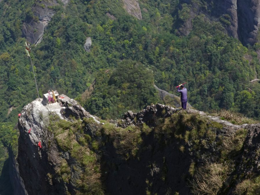 乘索道或步行登上八角寨觀景臺可以俯瞰崀山丹霞的全貌。李仁奇 攝