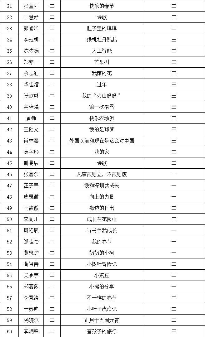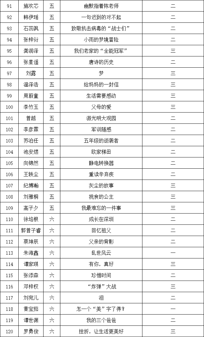自2021年1月,活動征稿啟動以來,獲得了深圳市廣大中小學生、教師、文學愛好者的熱烈響應積極參與,吸引了深圳百余所學校的上萬人關(guān)注報名?,F(xiàn)公布南山實驗教育集團前海港灣學校校園專場晉級復賽名單如下: