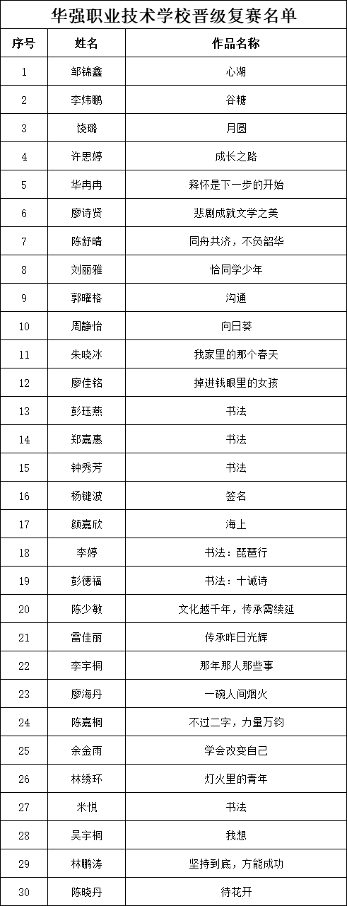 自2021年1月,活動(dòng)征稿啟動(dòng)以來(lái),獲得了深圳市廣大中小學(xué)生、教師、文學(xué)愛好者的熱烈響應(yīng)積極參與,吸引了深圳百余所學(xué)校的上萬(wàn)人關(guān)注報(bào)名?,F(xiàn)公布福田區(qū)華強(qiáng)職業(yè)技術(shù)學(xué)校專場(chǎng)晉級(jí)復(fù)賽名單如下: