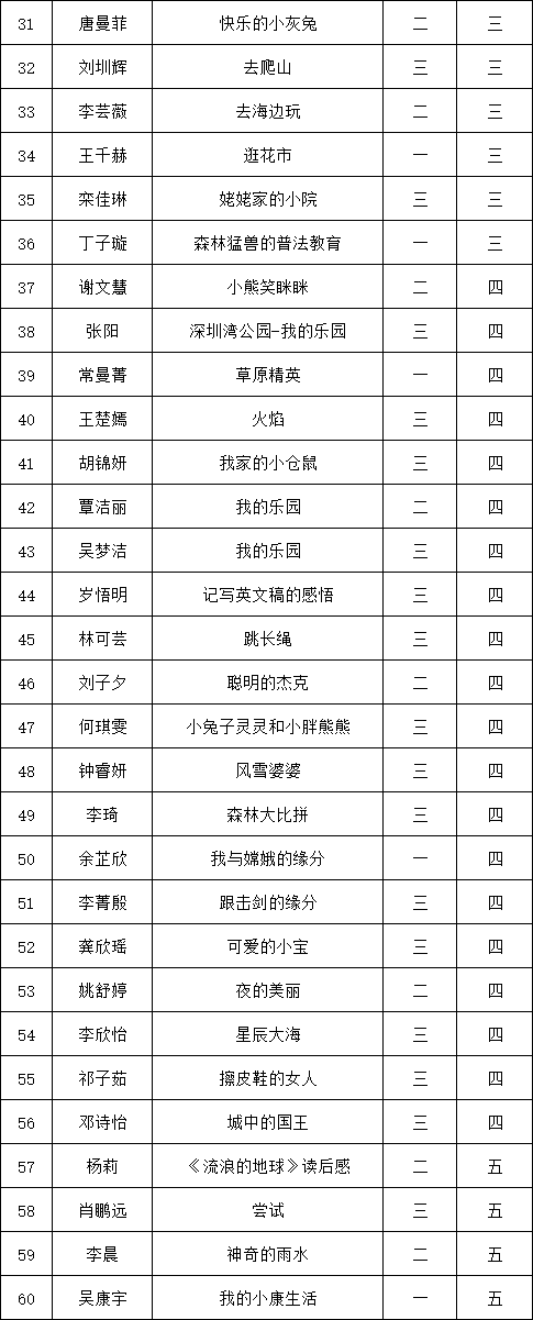 自2021年1月,活動征稿啟動以來,獲得了深圳市廣大中小學生、教師、文學愛好者的熱烈響應積極參與,吸引了深圳百余所學校的上萬人關注報名?,F(xiàn)公布深圳市南山實驗教育集團白芒小學專場晉級復賽名單如下:
