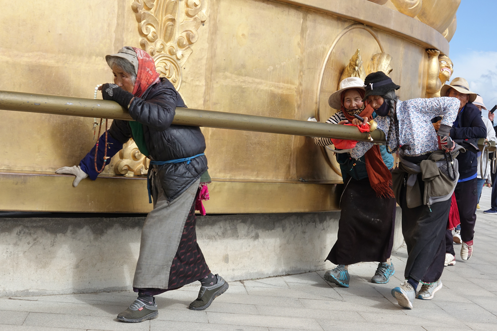 隨著我國(guó)藏傳佛教信徒聚居區(qū)經(jīng)濟(jì)社會(huì)的發(fā)展,從2009年起,在云南、青海、四川、甘肅四省先后建起了5座領(lǐng)先一時(shí)的“世界最大轉(zhuǎn)經(jīng)筒”。李仁奇 攝