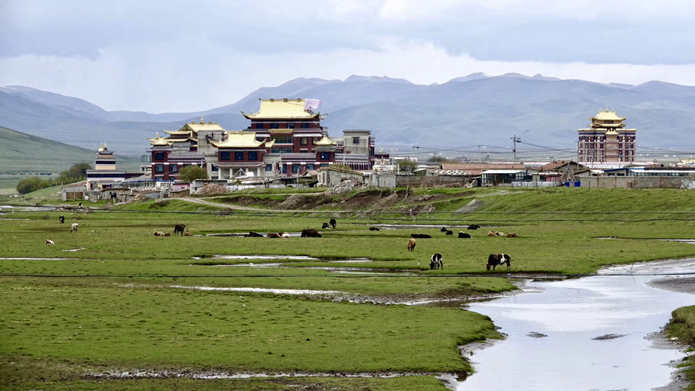 寧瑪寺矗立在遼闊的扎西貢色草灘之上,四周被河流環(huán)繞。李仁奇 攝