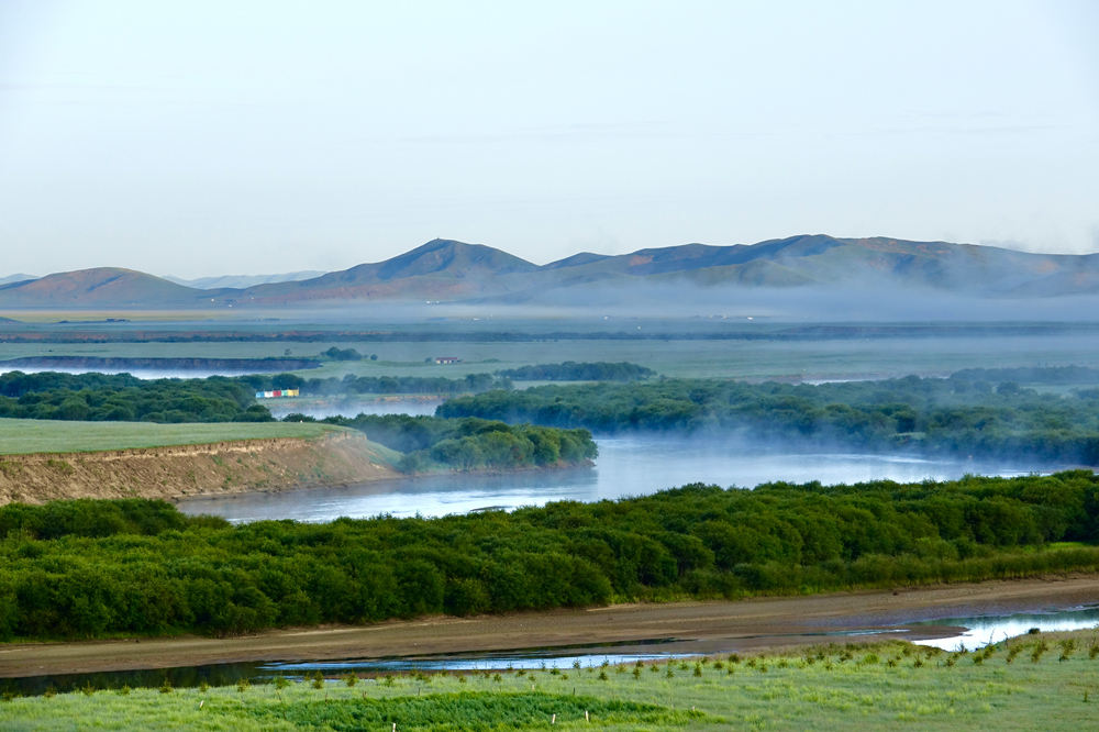 一灣河水從朦朧到漸漸清晰,一點(diǎn)點(diǎn)層次分明。李仁奇 攝
