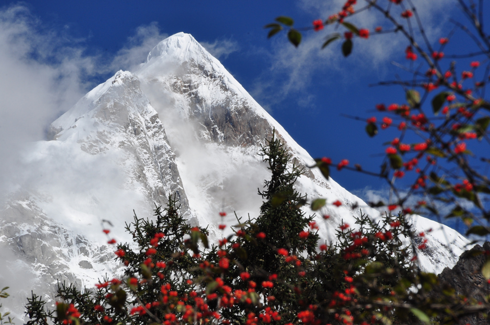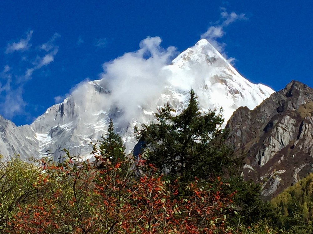 四座山峰長(zhǎng)年冰雪覆蓋,因幺妹身材最為苗條,經(jīng)常云遮霧繞,最難窺得全貌,素有“蜀山之后”、“東方的阿爾卑斯”之稱(chēng),與“蜀山之王”貢嘎山遙遙相望。李仁奇 攝