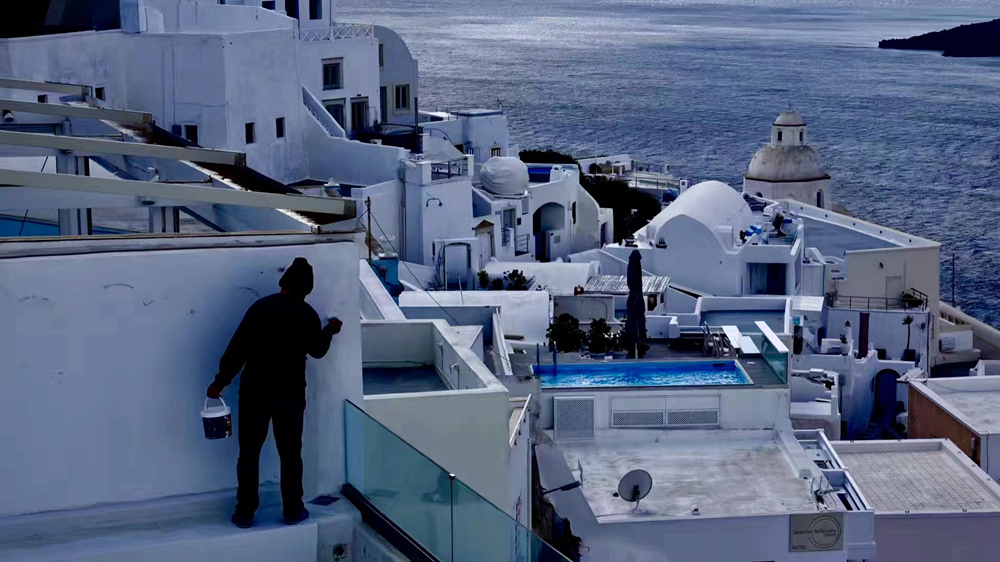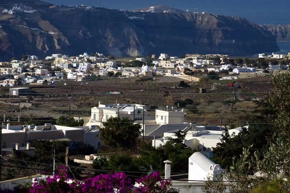 現(xiàn)在的圣托里尼島是希臘最著名的旅游勝地,以其充足的陽光,宜人的地中海氣候、獨特的地形地貌和藍白色的建筑吸引著全球的游客。李仁奇 攝