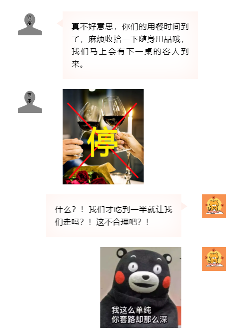 經商家提前告知的限時就餐規(guī)定,且消費者仍愿意消費的行為于商家與消費者雙方意思自洽,且協商一致的情形,雙方應遵守。如商家未提前告知消費者限時就餐的規(guī)定,則涉嫌侵害消費者的知情權、公平交易權。(消費提示:特殊節(jié)日里,外出就餐的消費者較多,消費者可以提前咨詢商家了解,是否有限時就餐的規(guī)定,并根據具體情況選擇餐廳,如遭遇侵權行為,應保留相關證據材料,以便維權。)