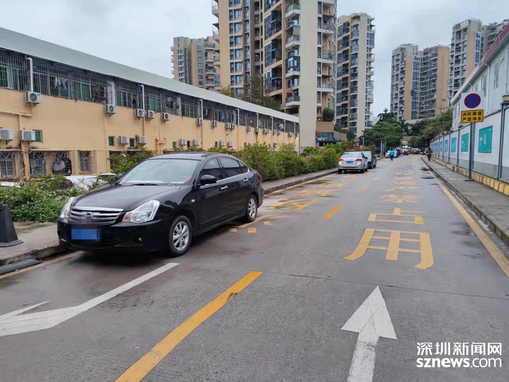 汽車停在此路段,這條路上赫然印著:消防通道,嚴(yán)禁占用。