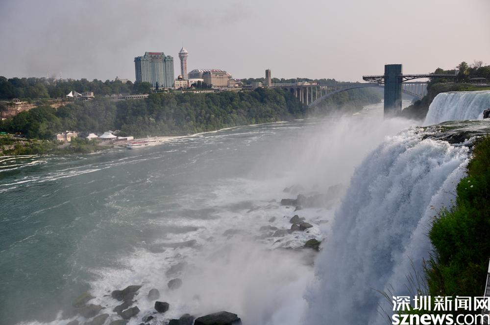 在瀑布兩側(cè),有兩座都叫尼亞加拉瀑布城的姐妹城市,一個(gè)隸屬于加拿大的安大略省,另一個(gè)隸屬于美國(guó)的紐約州,兩城隔河相望。李仁奇 攝