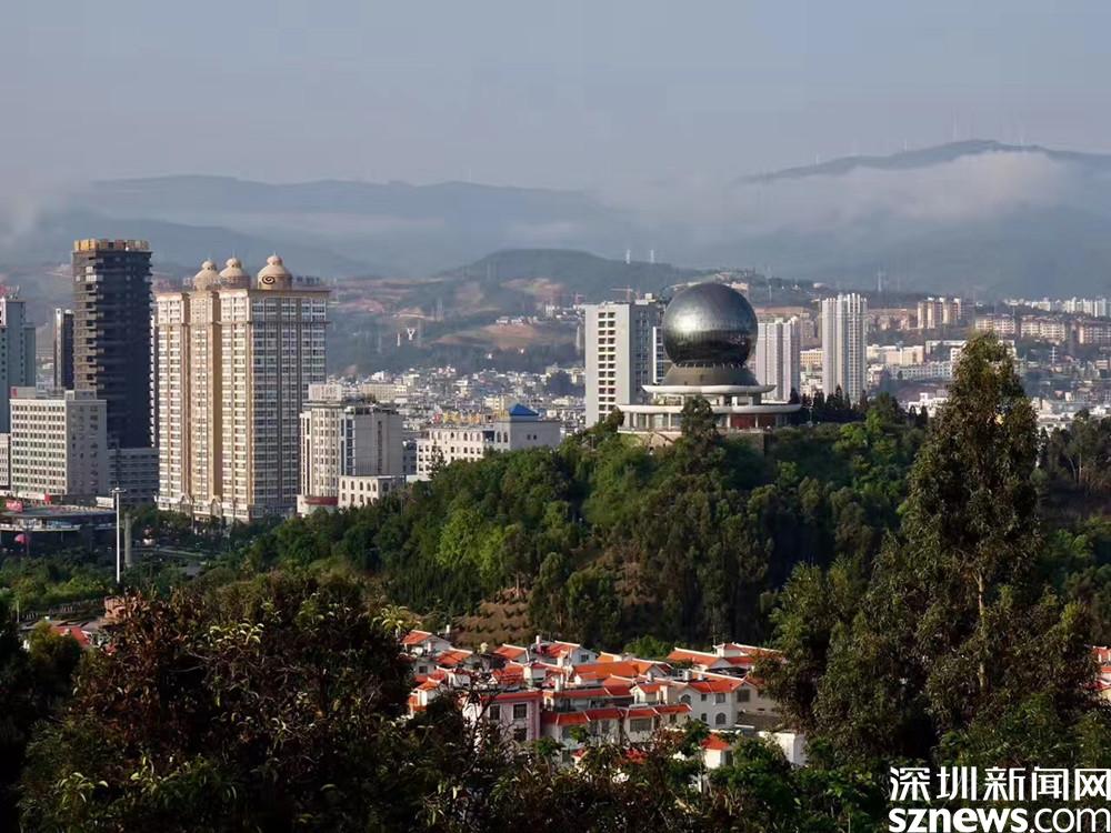 市內(nèi)的明珠廣場,巨大的球體就是高原明珠,在這里可以看到大半個城區(qū)的風景。李仁奇 攝