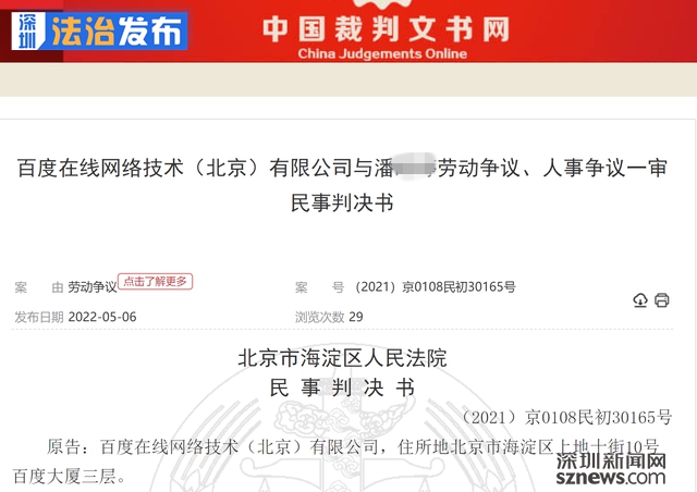 讀特客戶端·深圳新聞網(wǎng)2022年5月12日訊(記者 張玲 翁任瑩 實(shí)習(xí)生 趙薇)5月6日,中國裁判文書網(wǎng)披露的一起案件顯示,百度公司前員工潘某某離職后入職字節(jié)跳動(dòng),被百度告上法庭,理由是違反競業(yè)限制義務(wù)。北京市海淀區(qū)人民法院最終判決潘某返還百度公司為其支付的競業(yè)限制補(bǔ)償金214800元,同時(shí)判決潘某某向百度公司支付競業(yè)限制違約金859200元,繼續(xù)履行對百度公司的保密義務(wù)。