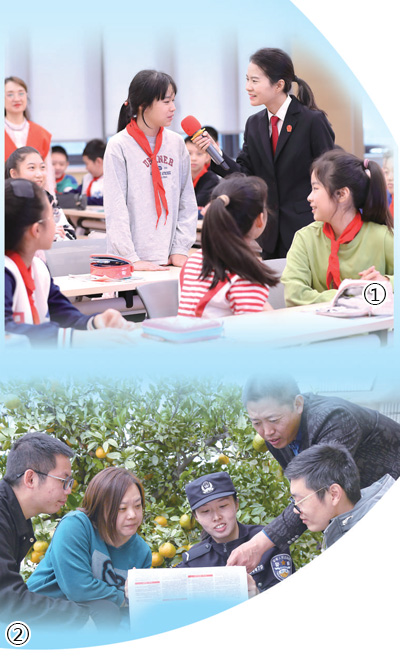 圖①:在重慶市中華路小學(xué)法治課堂上,法官與同學(xué)們互動(dòng)。 尚博攝(影像中國(guó))