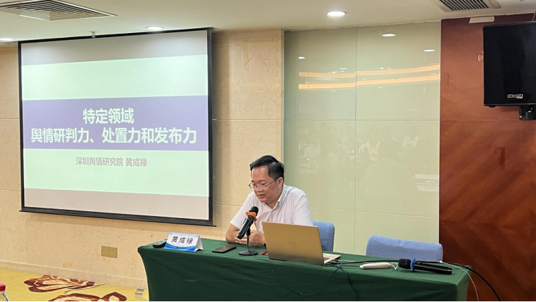 深圳新聞網(wǎng)2024年8月2日訊(記者 蔡雪曼 實(shí)習(xí)生 謝臻兒)為提高全市特定領(lǐng)域人員輿情工作素養(yǎng),深化輿情意識(shí)和認(rèn)知,助力營(yíng)造良好的輿論氛圍,7月25日下午,某市直單位舉辦專題培訓(xùn)班,邀請(qǐng)深圳輿情研究院執(zhí)行院長(zhǎng)黃成祿擔(dān)任授課老師,圍繞《特定領(lǐng)域輿情研判力、處置力和發(fā)布力》主題展開授課。