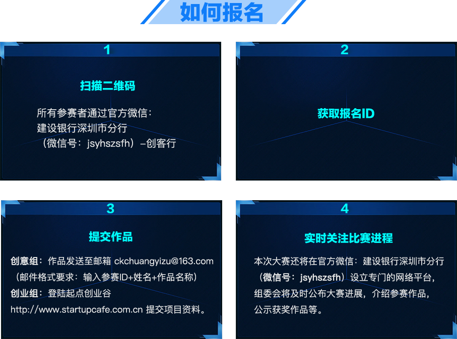 藍色夢工廠創(chuàng)客大賽由中國建設銀行深圳市分行、深圳國家高技術(shù)產(chǎn)業(yè)創(chuàng)新中心和建銀國際聯(lián)合主辦,積極響應國家大眾創(chuàng)業(yè)萬眾創(chuàng)新,支持深圳的創(chuàng)客們實現(xiàn)夢想。大賽組委會將邀請創(chuàng)業(yè)專家、科技專家、風險投資專家等對參賽項目的商業(yè)前景、創(chuàng)新性、成長性以及團隊素質(zhì)等維度進行綜合考察。我們將為獲獎創(chuàng)客團隊提供豐厚獎金、融資支持、初創(chuàng)企業(yè)金融套餐、免費赴英國開展企業(yè)參訪交流、高新區(qū)孵化器場地優(yōu)先入駐、價格優(yōu)惠以及媒體曝光、品牌推廣等多項支持。